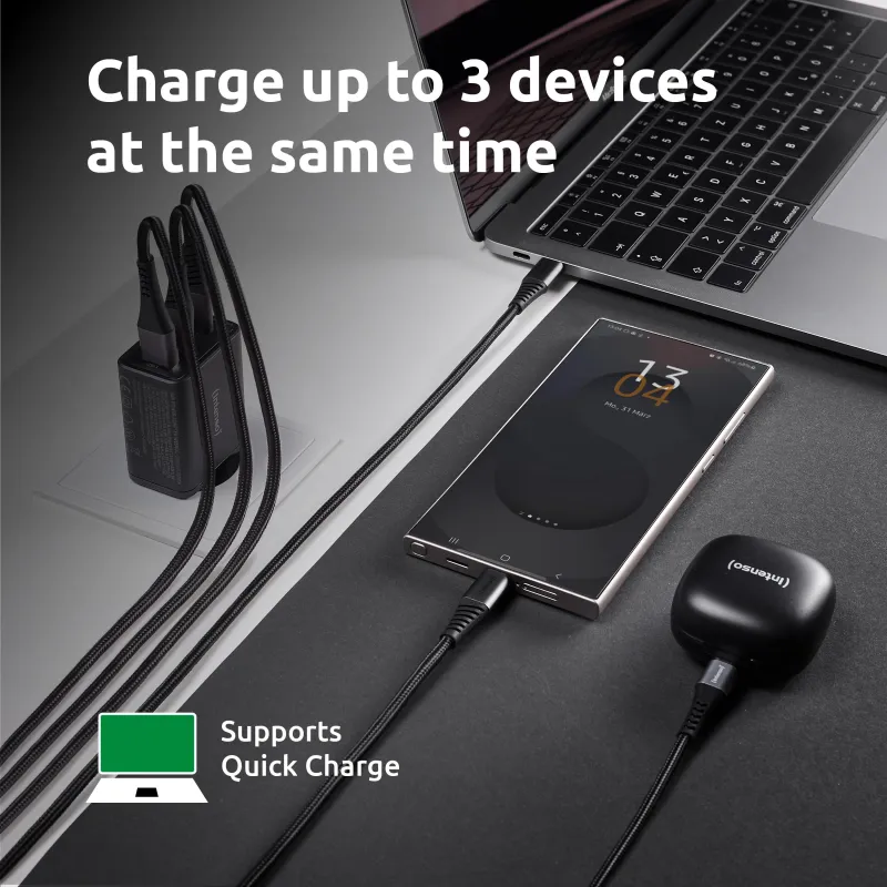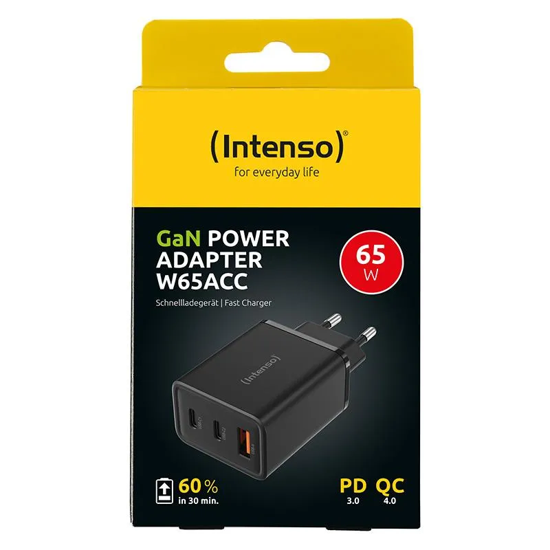 ESTE CARGADOR PODEROSO FUE DISEÑADO ESPECIALMENTE PARA TI: Este cargador poderoso fue diseñado especialmente para ti y cambiará la forma en que alimentas tus dispositivos. El adaptador de corriente Intenso W65ACC, con sus dos puertos USB-C y un puerto USB-A, es la solución todo en uno para suministrar energía a todos tus accesorios tecnológicos.