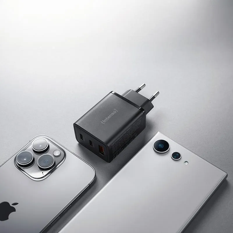 LO QUE HACE QUE EL CARGADOR INTENSO DE 65 VATIOS SEA REALMENTE ESPECIAL: Lo que hace que el cargador Intenso de 65 vatios sea realmente especial es su revolucionaria tecnología GaN. Asegura que el adaptador sea tanto más pequeño como más eficiente energéticamente. Eso significa que puedes llevarlo fácilmente contigo a cualquier lugar. Además, su eficiencia energética significa una carga más rápida, siendo también más amigable con el medio ambiente y ahorrándote dinero.