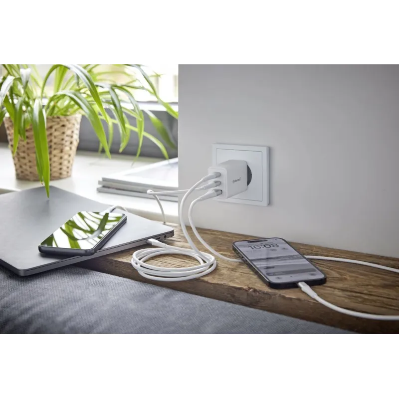 Intenso 7806512 Cargador Pared GaN W65ACC 1xUSB-A/2xUSB-C Blanco