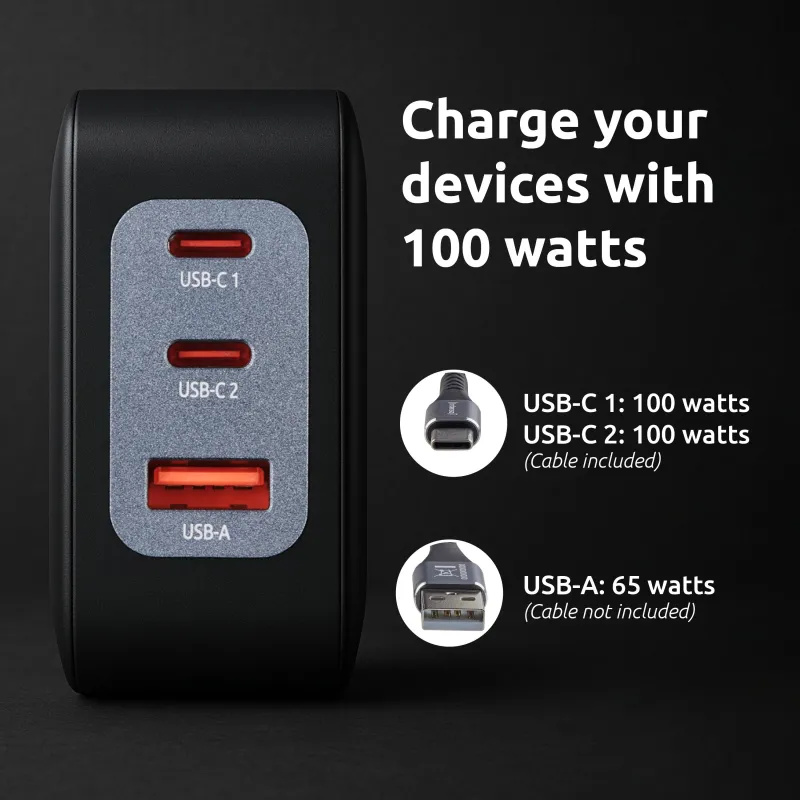 EL PAQUETE INCLUYE: El paquete consta del adaptador de corriente W100ACC y el cable C520C USB-C a USB-C. Ofrece una solución potente y confiable para cargar varios dispositivos electrónicos. Con una salida máxima de 100 vatios, el conjunto es adecuado para su uso con teléfonos inteligentes, tabletas, computadoras portátiles y otros accesorios basados en USB. El adaptador utiliza tecnología moderna GaN, que permite un alto rendimiento en un diseño compacto. Con un peso de solo 200 gramos, es particularmente amigable para viajar, ideal para el uso móvil diario o cuando se viaja.