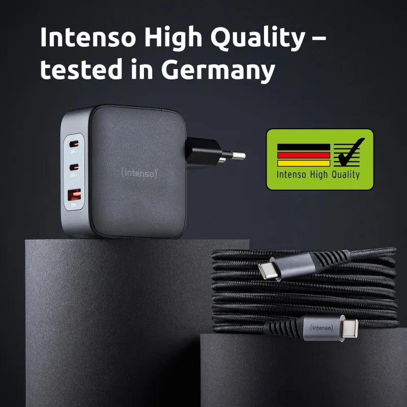 Intenso 7810010 Cargador x2USB-C/USB-A 100W con Cable USB-C Negros