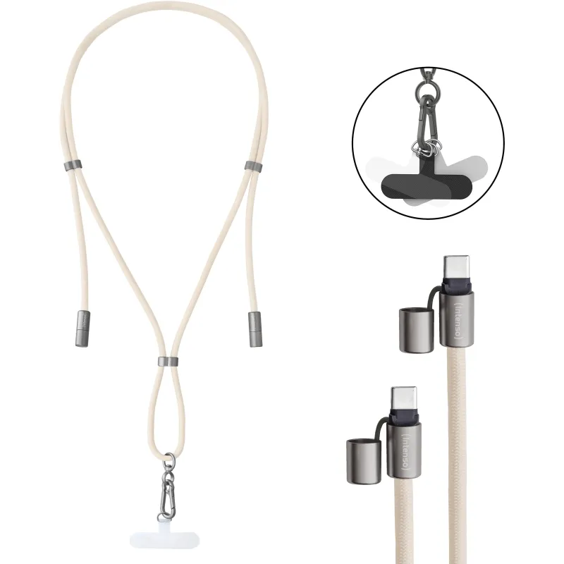 Cable USB Intenso 7991001 con conector USB C en ambos extremos, color beige y longitud de cable 1.65 m, ideal para transferencias eficientes