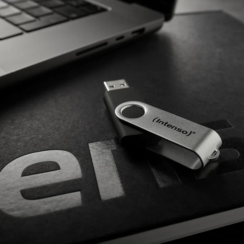 Pendrive Intenso Office Line 128GB con capacidad 128 GB, diseño giratorio en negro y plata, conexión USB tipo A y velocidad USB 3.2