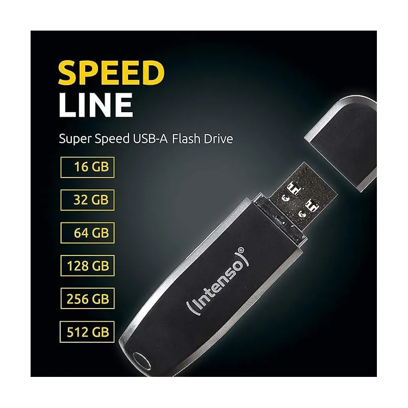 Pendrive Intenso Speed Line Capacidad de Almacenamiento 512GB / USB 3.2 / Velocidad de Lectura 70MB/s /  Velocidad de Escritura 20MB/s / Conexión USB A Negro