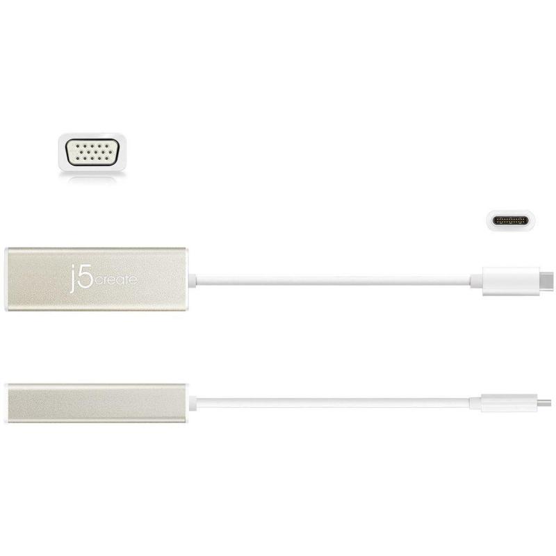Adaptador j5create JCA111 USB-C a VGA con resolución máxima de 1920x1080 a 60 Hz, diseño compacto en aluminio