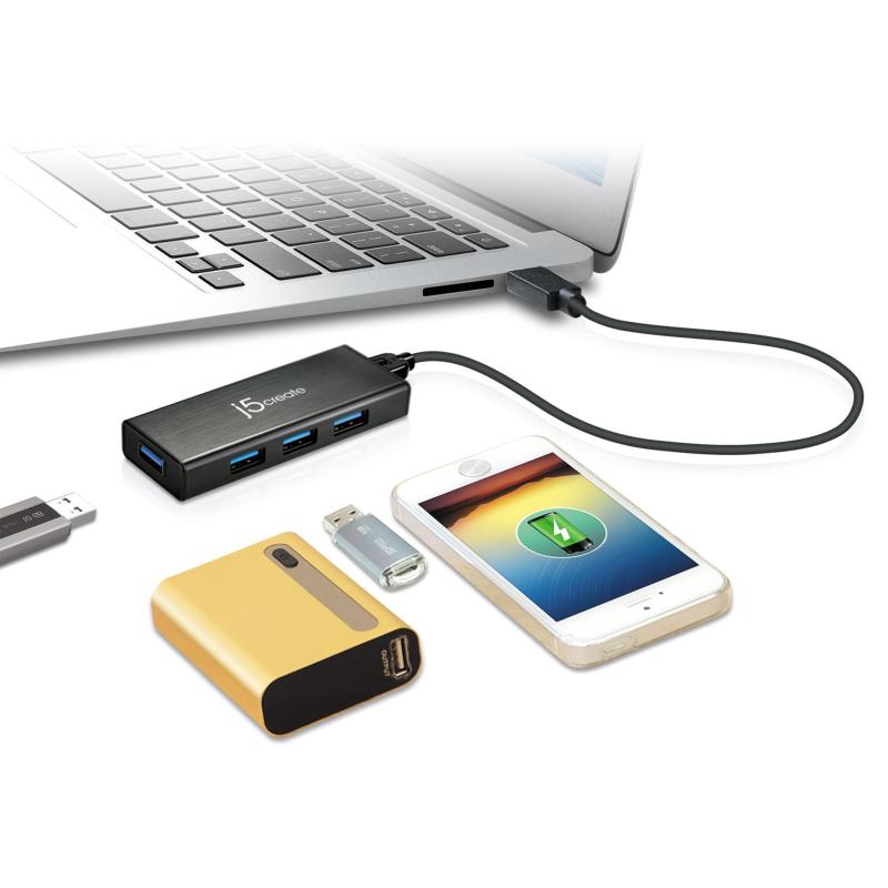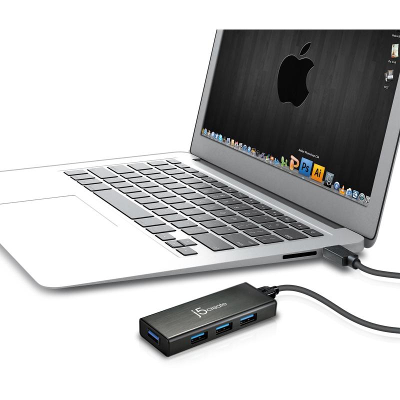 HUB j5create JUH340-N con 4 puertos USB 3.2 Gen 1, velocidad de 5 Gbps, carcasa de aluminio