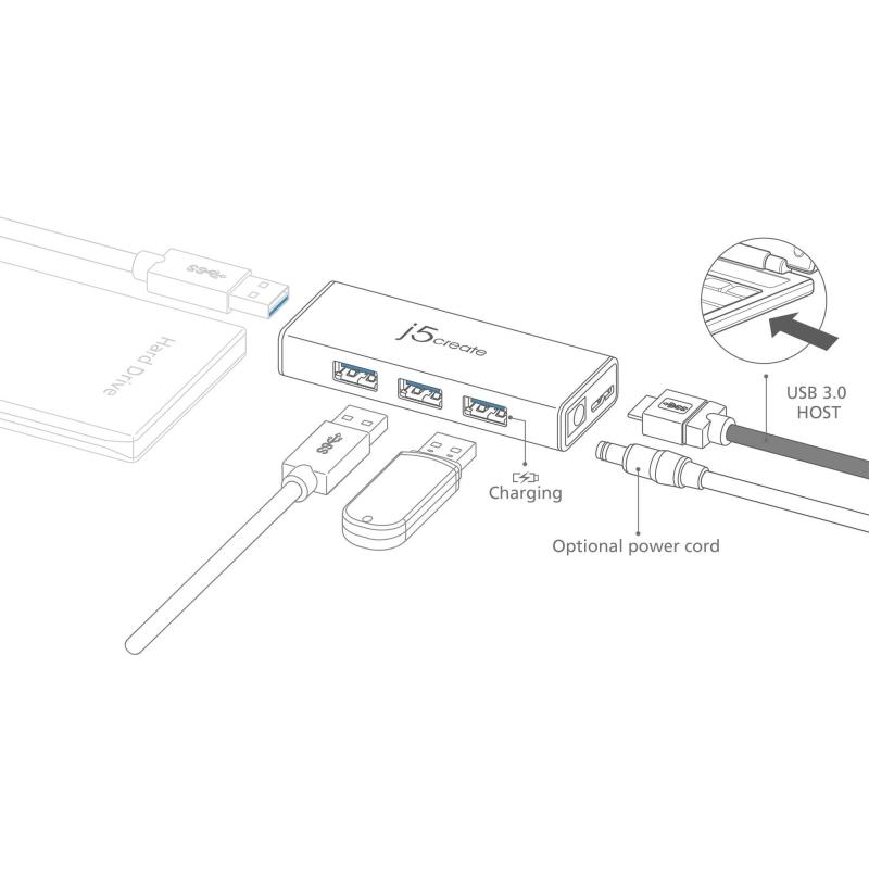 - Contenido del paquete: 1 x JUH340 USB™ 3.0 4-Port Hub, 1 x USB™ 3.0 cable, 1 x Power Adapter, 1 x Quick Installation Guide