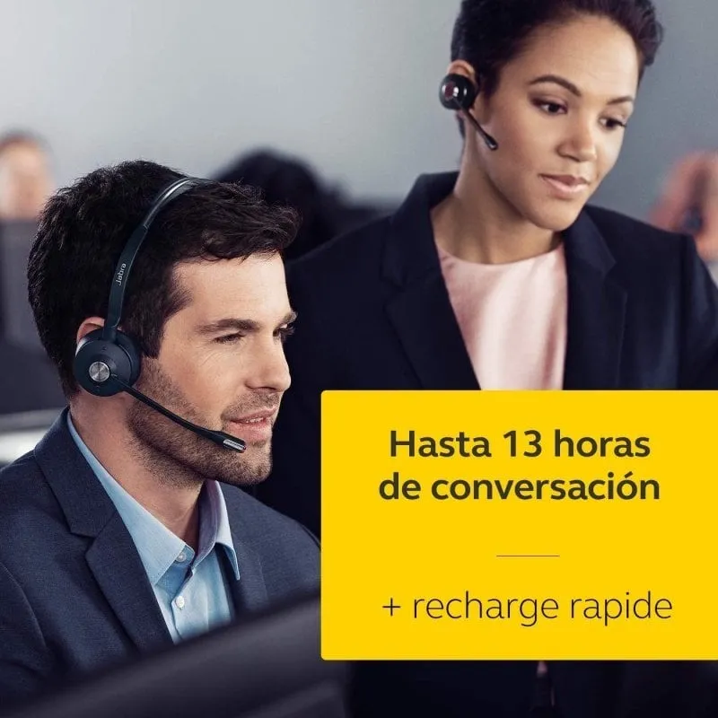 LIBERTAD SIN CABLES: Con los auriculares inalámbricos de Jabra, podrás disfrutar de una conexión Bluetooth de hasta 150 metros de alcance, y de una tecnología DECT que te permite conectarlos a varios teléfonos simultáneamente. Así, podrás atender todas tus llamadas con una sola diadema, sin perder calidad de sonido ni batería.