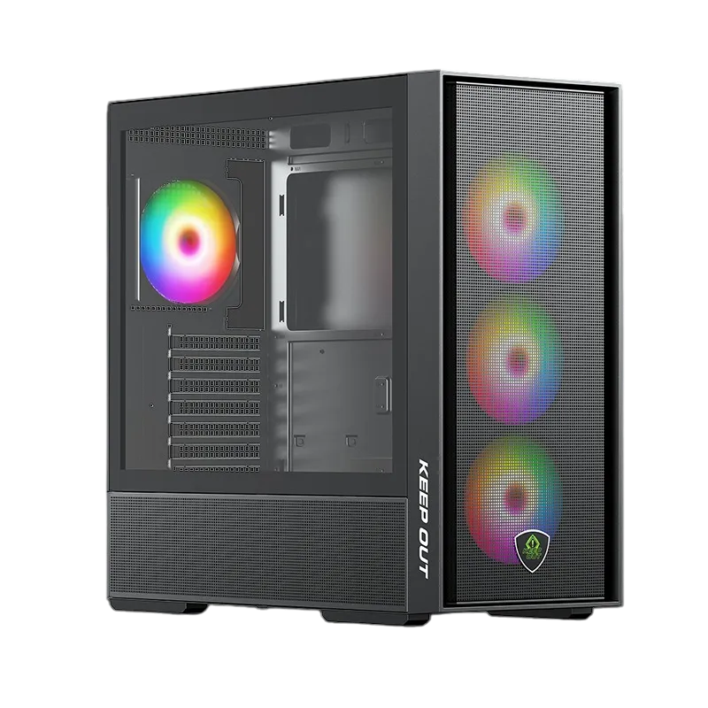 La KEEP OUT XC-805 MESH es una caja MicroATX con frontal mesh, estética ARGB y USB 3.0 frontal para equipos compactos.