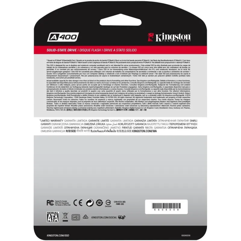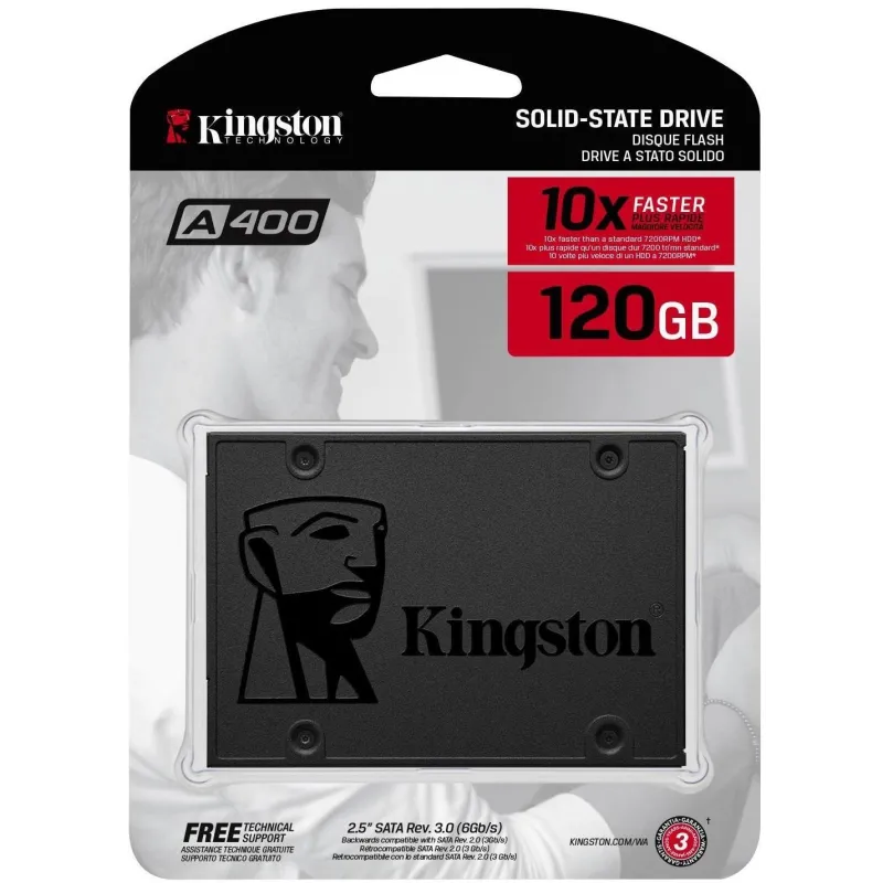 VELOCIDADES INCREÍBLES, Y UNA FIABILIDAD A TODA PRUEBA: Los discos de estado sólido A400 de Kingston mejoran drásticamente la capacidad de respuesta de su actual sistema con velocidades de arranque, carga y transferencia increíbles en comparación con las de los discos duros mecánicos. Equipado con el controlador más avanzado que le permite alcanzar velocidades de lectura y escritura de hasta 500 MB/s y 450 MB/s*, este SSD es diez veces más rápido que un disco duro convencional**, lo cual le permite ofrecer un mayor rendimiento, potenciar la multitarea y agilizar el funcionamiento del sistema.
