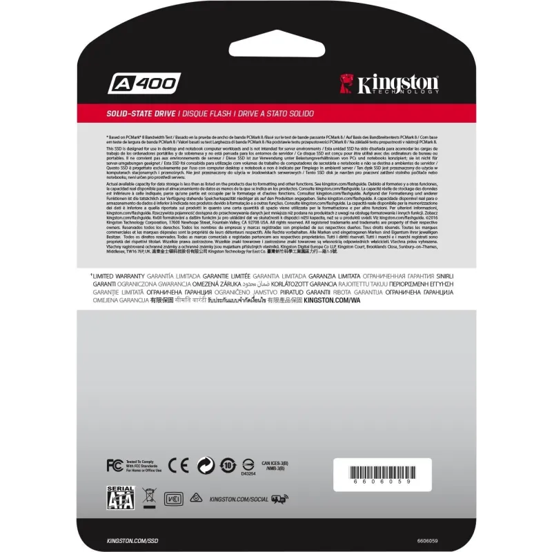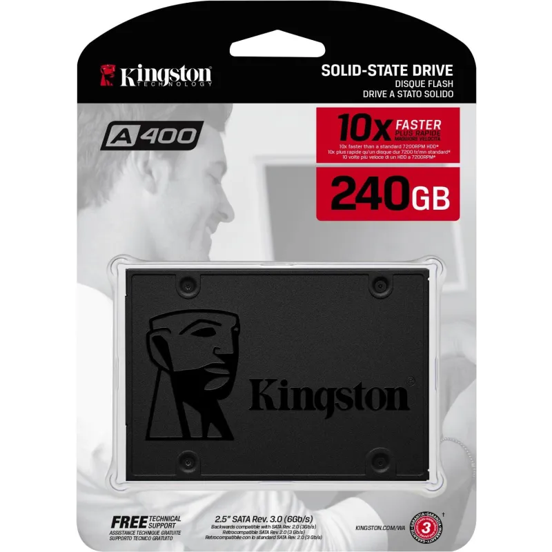 VELOCIDADES INCREÍBLES Y UNA FIABILIDAD A TODA PRUEBA: Los discos de estado sólido A400 de Kingston mejoran drásticamente la capacidad de respuesta de su actual sistema con velocidades de arranque, carga y transferencia increíbles en comparación con las de los discos duros mecánicos. Equipado con el controlador más avanzado que le permite alcanzar velocidades de lectura y escritura de hasta 500 MB/s y 450 MB/s, es diez veces más rápido que un disco duro convencional, lo cual le permite ofrecer un mayor rendimiento, potenciar la multitarea y agilizar el funcionamiento del sistema.