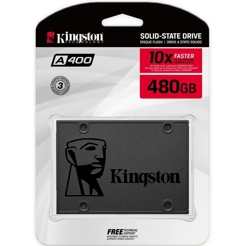 VELOCIDADES INCREÍBLES, Y UNA FIABILIDAD A TODA PRUEBA: Los discos de estado sólido A400 de Kingston mejoran drásticamente la capacidad de respuesta de su actual sistema con velocidades de arranque, carga y transferencia increíbles en comparación con las de los discos duros mecánicos. Equipado con el controlador más avanzado que le permite alcanzar velocidades de lectura y escritura de hasta 500 MB/s y 450 MB/s*, este SSD es diez veces más rápido que un disco duro convencional**, lo cual le permite ofrecer un mayor rendimiento, potenciar la multitarea y agilizar el funcionamiento del sistema.