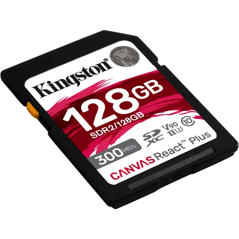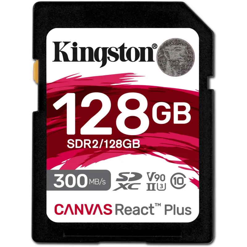 Tarjeta de Memoria Kingston Canvas React Plus SDXC 128GB con velocidad de lectura 300 MB/s, clase de velocidad de vídeo V90 y tipo UHS-II