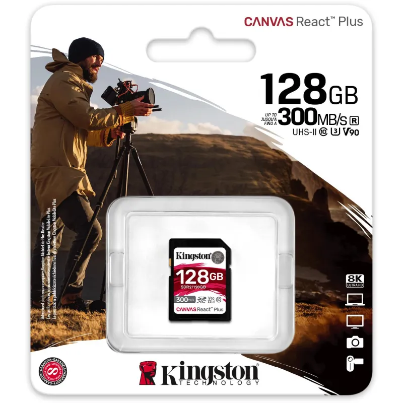 Kingston Canvas React Plus SDXC 128GB UHS-II V90 U3 Clase 10