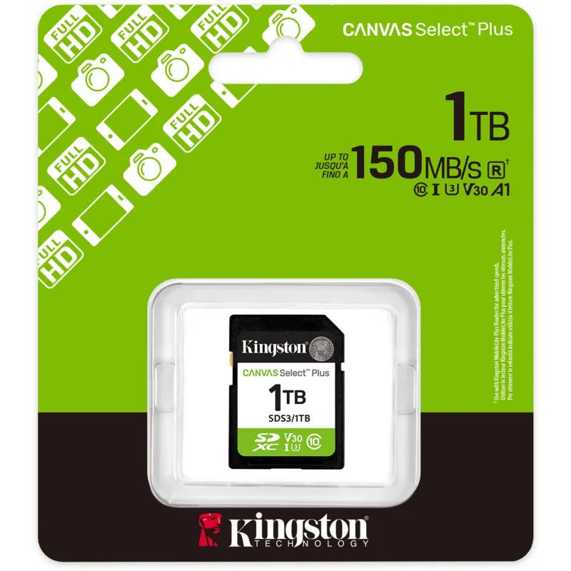 Kingston Canvas Select Plus 1TB SDXC Gen3 150 MB/s C10 UHS-I U3 V30