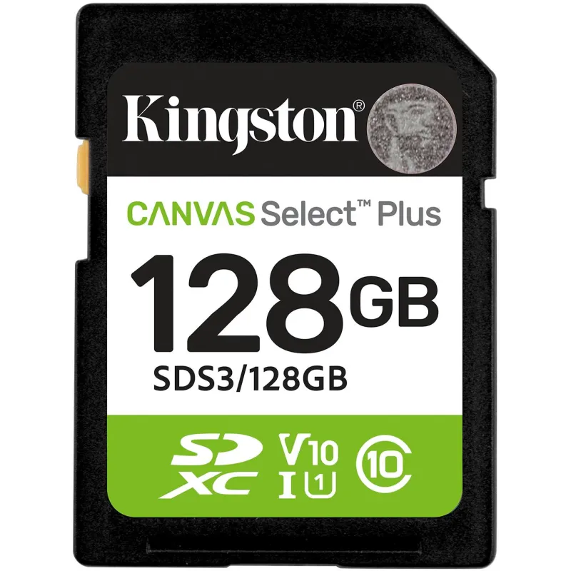 Tarjeta de Memoria Kingston Canvas Select Plus Gen3 128GB con velocidad de lectura 150 MB/s, memoria UHS-I clase 10 y clase de vídeo V10