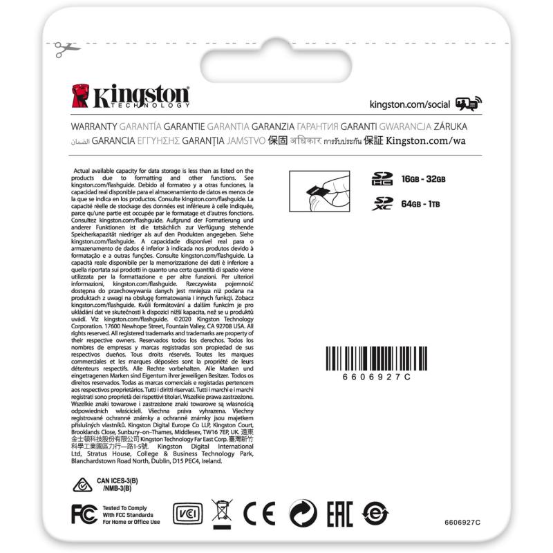 Tarjeta de Memoria Kingston Canvas Select Plus memoria SDXC 512 GB UHS-I U3 V30 alta velocidad de escritura de 85 MB/s resistente al agua calor.