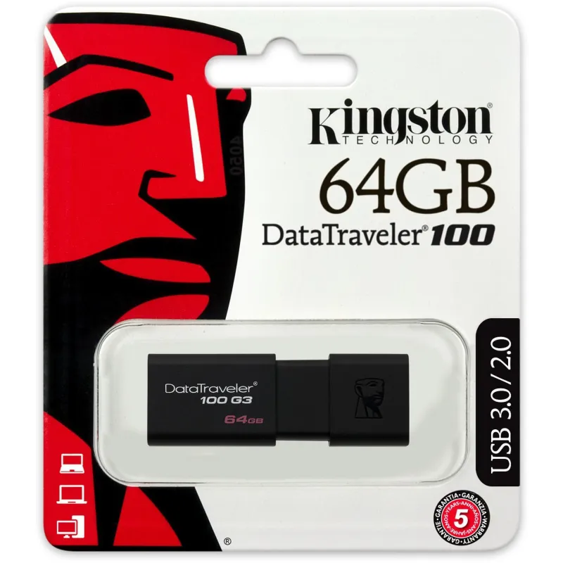 Pendrive Kingston DataTraveler 100 G3 64GB presenta un diseño elegante y económico que permite conducir la transición a USB 3.0 de un modo satisfactorio con una inversión mínima. DT100G3, disponible en capacidades de entre 16 y 256 GB, también es retrocompatible con versiones anteriores de USB 2.0 y cuenta con una garantía de cinco años.