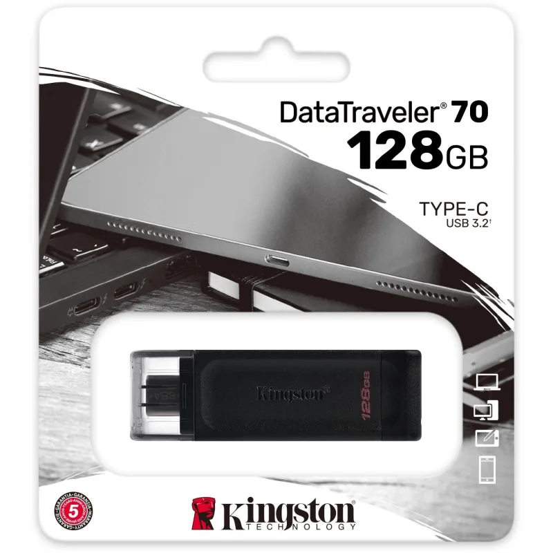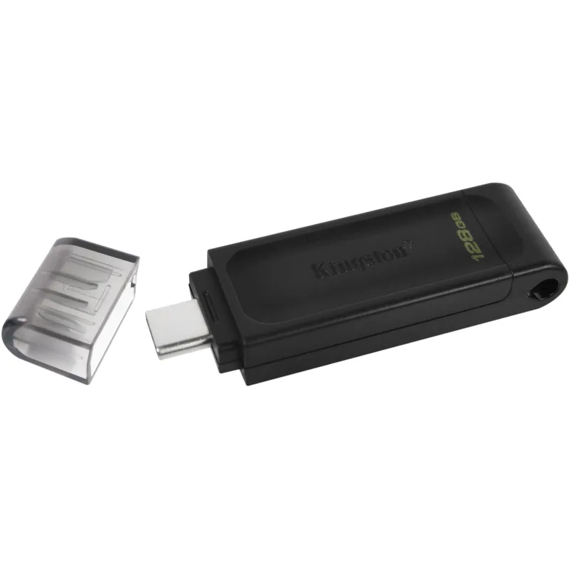 Pendrive Kingston DataTraveler 70 Capacidad de Almacenamiento 128GB / USB 3.2 / Velocidad de Lectura 200MB/s /  Velocidad de Escritura 100MB/s / Conexion USB C Negro