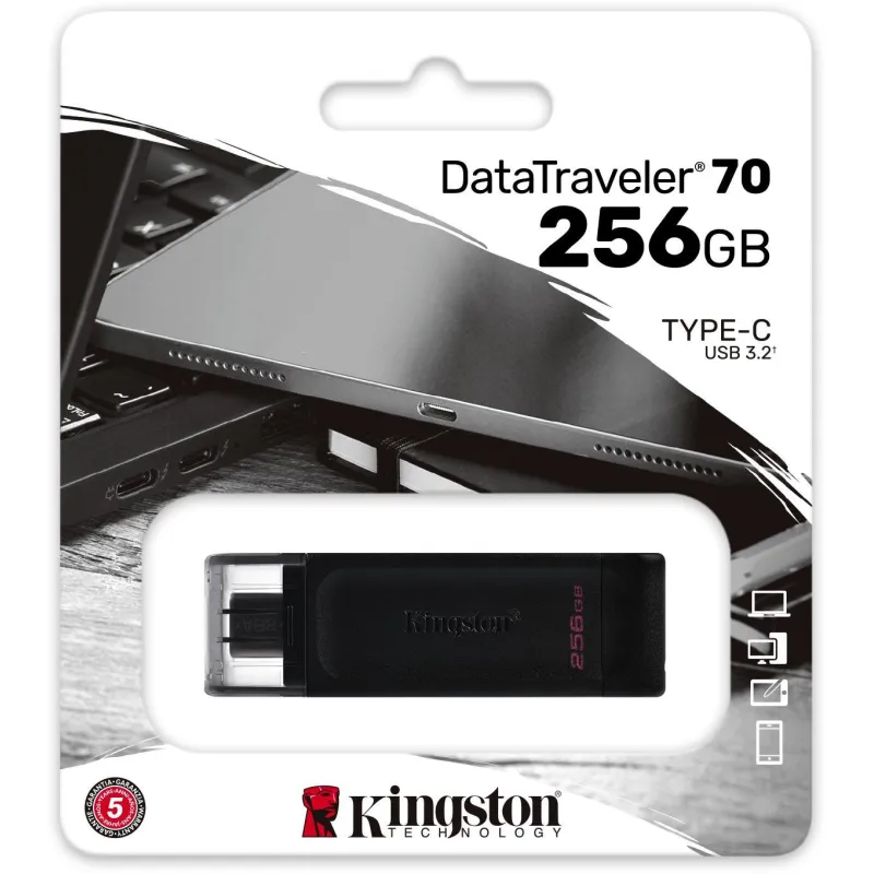 ALMACENAMIENTO USB-C: Kingston’s DataTraveler® 70 es una unidad flash USB-C* portátil y ligera compatible con USB 3.2 Gen 1. Está diseñada para ser utilizada con dispositivos USB-C compatibles, como notebooks, laptops, tabletas y teléfonos. Con capacidades de hasta 256GB**, el DataTraveler 70 es más que capaz de expandir tu almacenamiento para el uso diario.