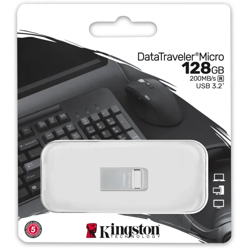 DISEÑO ULTRAPEQUEÑO EN METAL DE ALTA CALIDAD: El Pendrive Kingston DataTraveler DTMC3G2 128GB es una unidad USB ultracompacta y ligera, ideal como espacio de almacenamiento plug-and-stay, compatible con ordenadores, impresoras, consolas de juegos y mucho más. La unidad tiene una carcasa metálica de alta calidad y bajo perfil y una ranura de acoplamiento integrada para evitar interferencias cuando se conecta a los puertos USB. DT Micro ofrece una velocidad máxima de USB 3.2 Gen 1 de 200 MB/s de lectura1 y una capacidad máxima de 256 GB2 para transferir y almacenar rápidamente archivos de gran tamaño como películas, música, juegos y fotos.