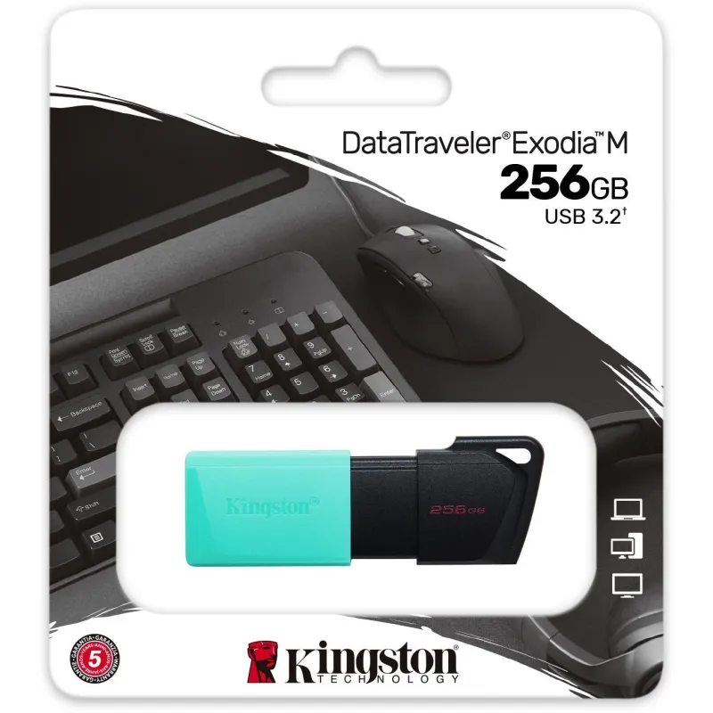 Pendrive Kingston DataTraveler Exodia M Capacidad de Almacenamiento 256GB / USB 3.2 / Velocidad de Lectura 85MB/s  / Conexion USB A Negro/Turquesa