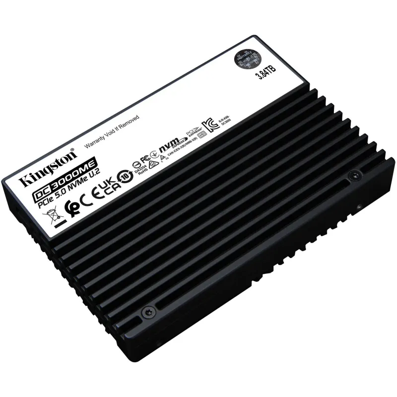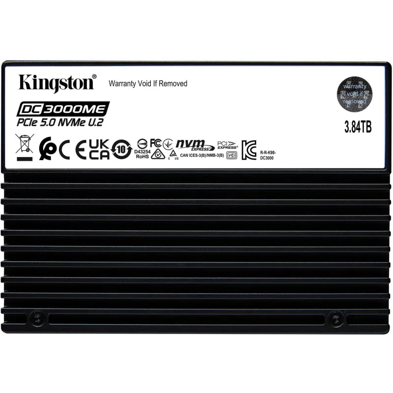 NVME PCIE 5.0 U.2 PARA APLICACIONES DE SERVIDOR: El disco SSD U.2 para centros de datos Kingston’s DC3000ME presenta una interfaz NVMe PCIe 5.0 de alta velocidad y emplea NAND 3D eTLC, por lo que es adecuado para una gran variedad de aplicaciones de servidor como IA, HPC, OLTP, bases de datos, infraestructura de nube e informática periférica. DC3000ME cuenta con protección contra cortes de alimentación para salvaguardar los datos en caso de cortes de alimentación repentinos y cifrado AES de 256 bits para una seguridad avanzada de los datos. DC3000ME emplea la interfaz PCIe 5.0 de alta velocidad más reciente y es compatible con servidores y placas base PCIe 4.0. Al igual que todos los discos SSD para centro de datos de Kingston, DC3000ME está diseñado para ofrecer uniformidad de E/S y baja latencia como criterios fundamentales del diseño con los que pueden contar los integradores de sistemas, los centros de datos a hiperescala y los proveedores de servicios en la nube. DC3000ME está disponible en capacidades de 3,84 TB, 7,68 TB y 15,36 TB*, y cuenta con cinco años de garantía limitada y la asistencia técnica que caracteriza a todos los productos de Kingston.