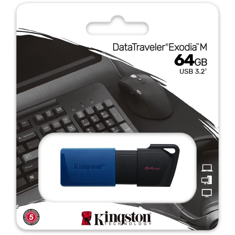 Pendrive Kingston DataTraveler Exodia M Capacidad de Almacenamiento 64GB / USB 3.2 / Velocidad de Lectura 85MB/s  / Conexion USB A Negro/ Azul
