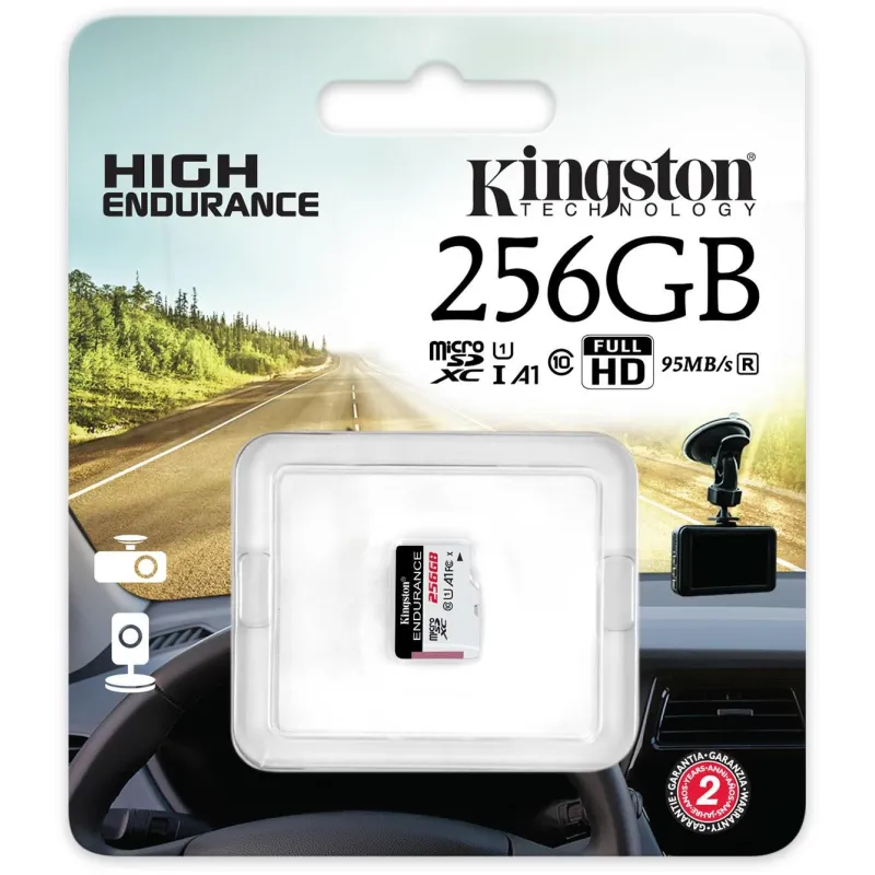 Tarjeta de Memoria Kingston Endurance SDCE/256GB con velocidad de lectura 95 MB/s, clase de rendimiento A1 y resistencia al agua
