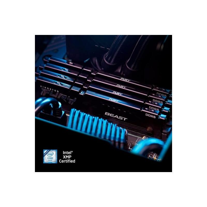 La memoria Kingston FURY Beast DDR5 trae la tecnología más novedosa y avanzada para las plataformas de juego de nueva generación. Empujando todavía más allá los límites de velocidad, capacidad y fiabilidad, DDR5 llega con multitud de novedades y mejoras, como el ECC (código de corrección de errores) interno (ODECC) para mantener la estabilidad a velocidades extremas, dobles subcanales de 32 bits para incrementar la eficacia, y un circuito integrado de gestión de alimentación dentro del modulo (PMIC) para inyectar energía cuando más se la necesita. Gracias a los notables avances en materia de velocidad, con la duplicación de bancos desde 16 a 32 y de la longitud de ráfaga desde 8 a 16, la memoria DDR5 le llevará a nuevos niveles en materia de juego y de aplicaciones del sistema. Tanto si está llevando los límites de su especialización jugadora hasta niveles nunca vistos, realizando difusiones 4K+ en directo o experimentando con animaciones complejas y digitalización 3D, la memoria Kingston FURY Beast DDR5 es la actualización que necesita, ya que combina perfectamente el diseño y un rendimiento sin límites. Además, utiliza Intel XMP 3.0, una nueva especificación de sobreaceleración (overclocking) que incluye dos perfiles personalizables para velocidades y sincronización.