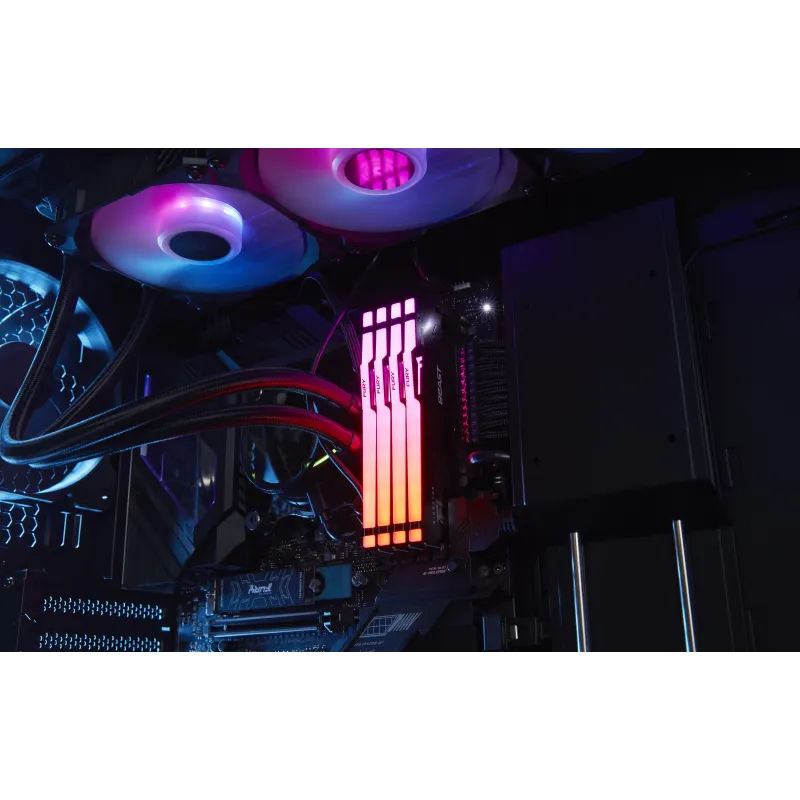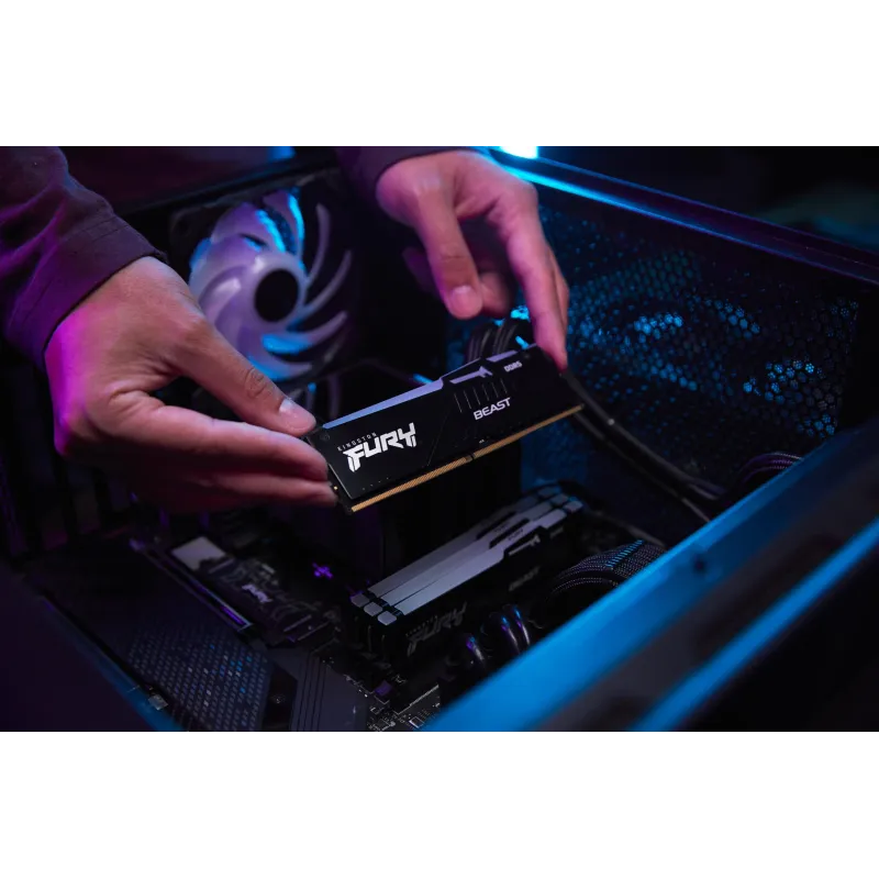 MEMORIA KINGSTON FURY™ BEAST DDR5 RGB - HASTA 6800 MT/S: Kingston FURY™ Beast DDR5 RGB* te permite hacer overclocking con estilo en plataformas para videojuegos de última generación mediante tecnología punta. Sé testigo de la velocidad mejorada del DDR5 con el doble de bancos de memoria y el doble de tamaño de ráfaga.