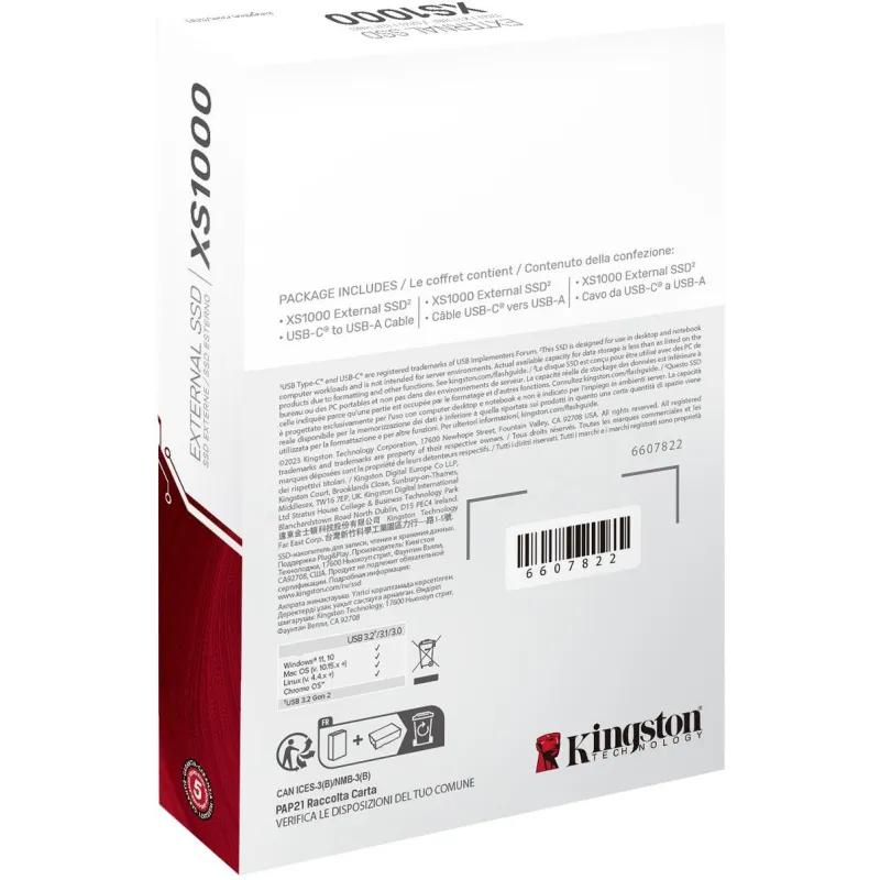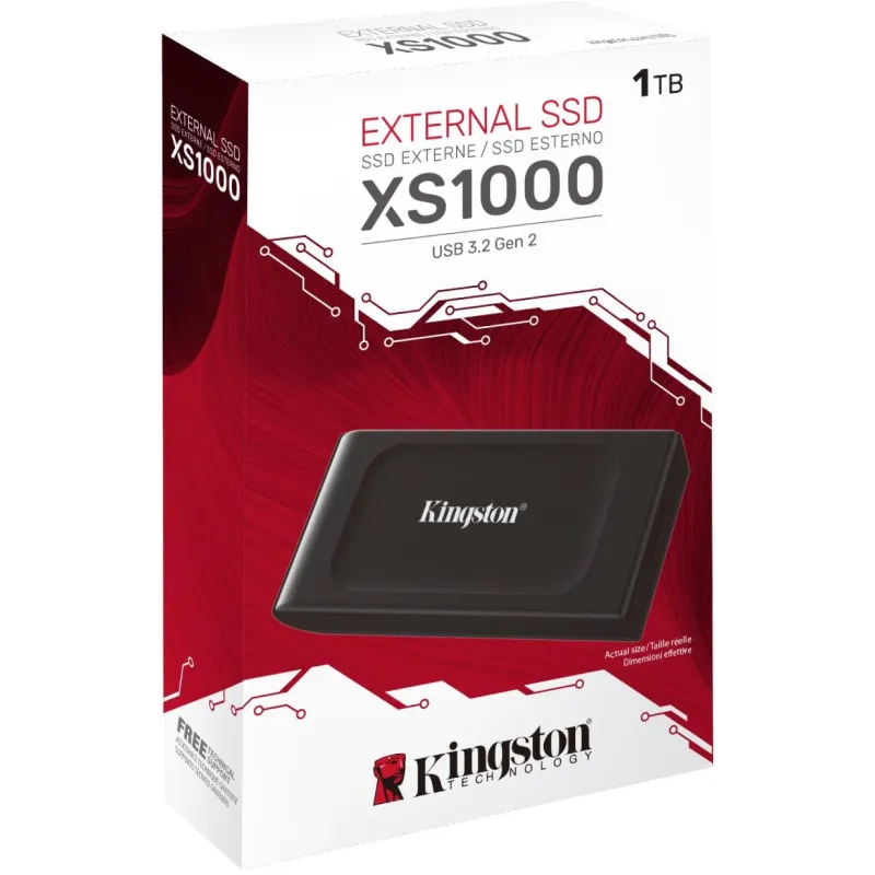 UNIDAD EXTERNA USB 3.2 GEN 2: El disco SSD externo XS1000 de Kingston es una solución increíblemente práctica para la copia de seguridad de archivos. Por su estilizado y compacto factor de forma, ha sido diseñada para encajar perfectamente en su estilo de vida, permitiéndole llevarla consigo con facilidad. No deje que el tamaño le engañe: esta minúscula y potente unidad alcanza velocidades de hasta 1.050 MB/s, y capacidades de hasta 2 TB, ofreciendo suficiente velocidad y espacio para guardar sus valiosos datos. Gracias a su inigualable comodidad e impresionantes capacidades de almacenamiento, el disco XS1000 se convertirá en su aliado perfecto para realizar copias de seguridad sin complicaciones, proteger sus documentos y recuerdos más importantes y preciados, y garantizar que sus archivos multimedia estén siempre accesibles. Despídase de la complejidad y dé la bienvenida a lo más avanzado en eficiencias de almacenamiento con el disco SSD externo XS1000.