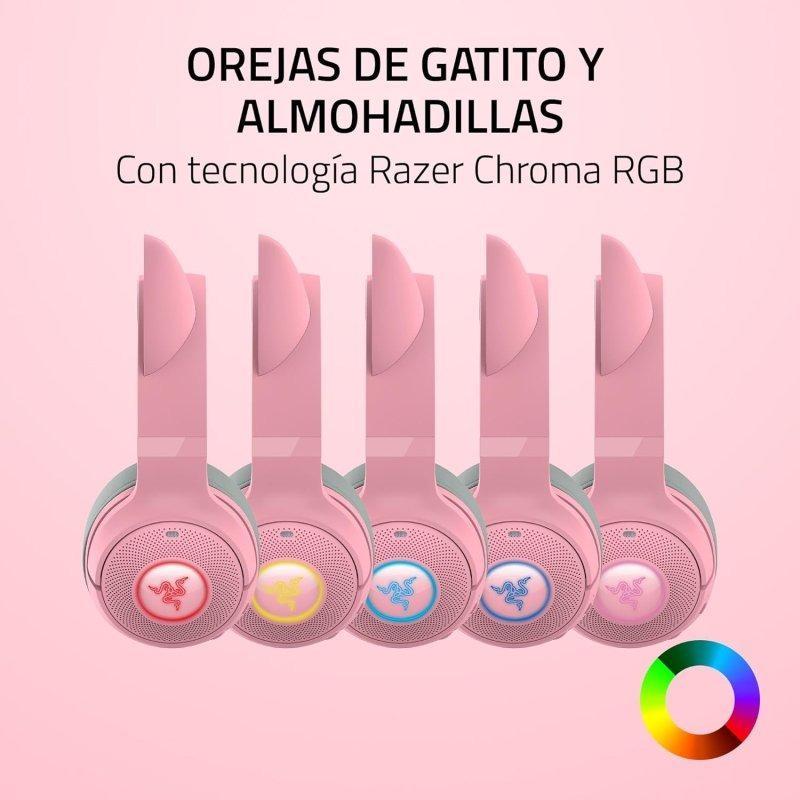 Auriculares Razer Kraken Kitty V2 diseño rosa con iluminación multicolor sonido envolvente Bluetooth 5.2