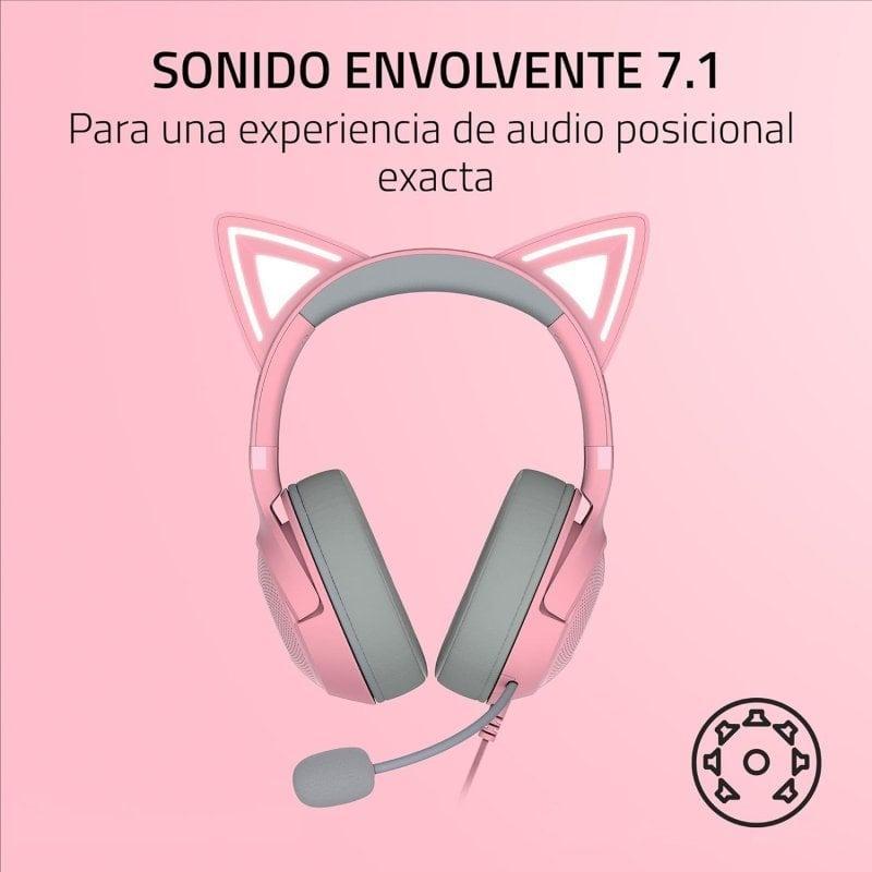 Auriculares Razer Kraken Kitty V2 sonido envolvente 7.1 diseño con retroiluminación RGB micrófono extraíble