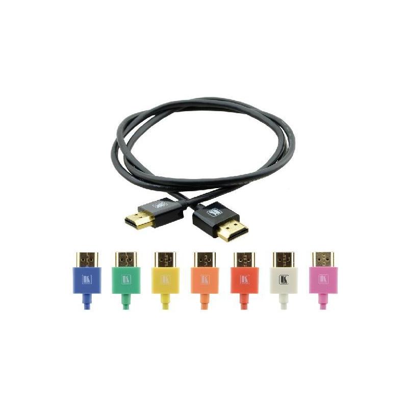 El Kramer es un cable HDMI de alta velocidad ultra delgado con Ethernet. El conector HDMI delgado y el diámetro más estrecho del cable se adaptan más fácilmente a espacios reducidos detrás de televisores o en un gabinete.