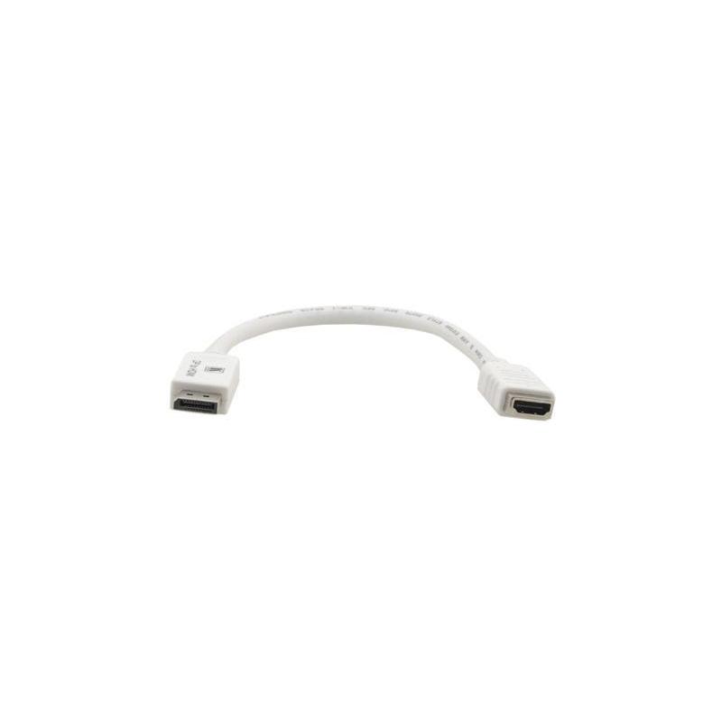 Adaptador Kramer Electronics 99-9697030 con conector DisplayPort macho y HDMI hembra, longitud de cable 0,3 m, color blanco y diseño compacto