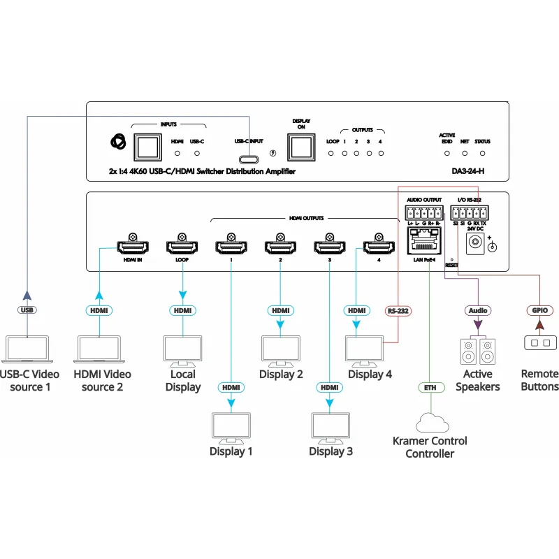 Kramer Electronics DA3-28-H 4K60 USB-C/HDMI Switcher Distribution Amplifiers