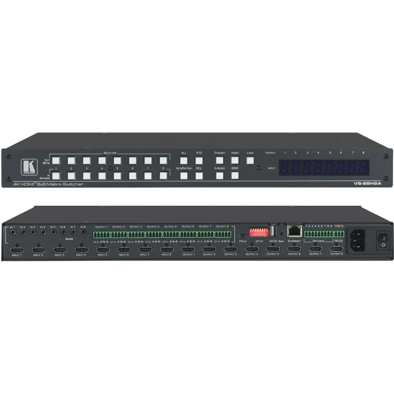 Switch Kramer Electronics VS-88H2A con versión HDMI 2.0, resolución 4K Ultra HD, 8 entradas y 8 salidas HDMI, montaje en rack