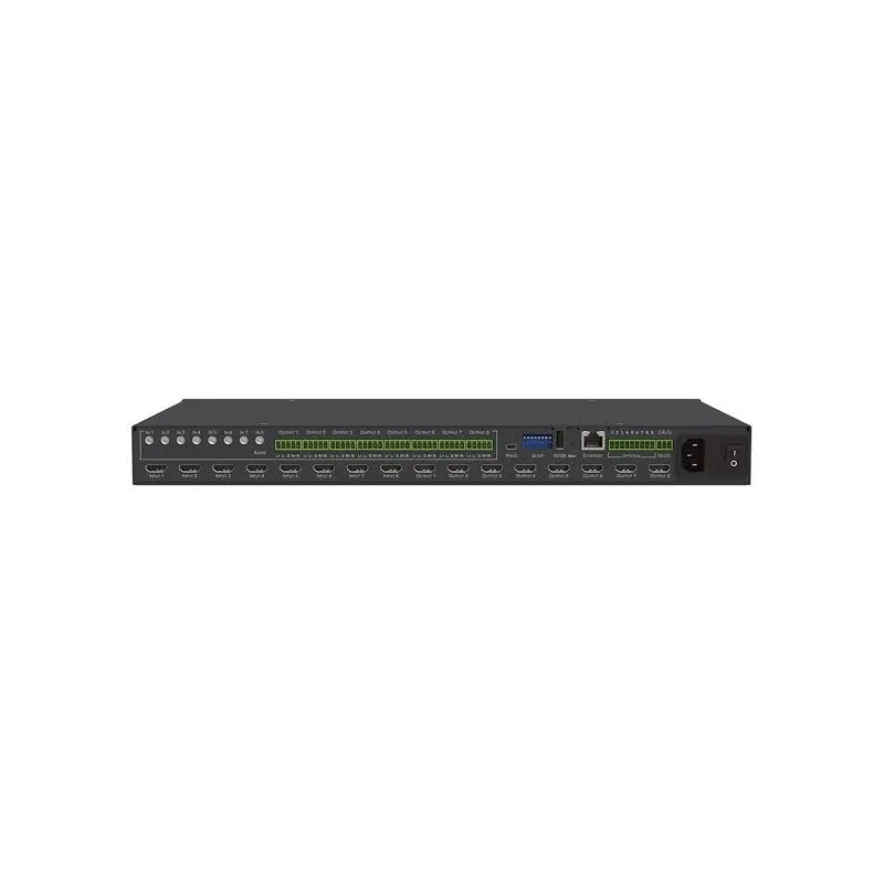 El Switch Kramer Electronics VS-88H2A es una solución profesional diseñada para gestionar múltiples señales HDMI con total precisión. Este conmutador cuenta con 16 puertos HDMI, de los cuales 8 son entradas y 8 salidas, lo que permite una distribución eficiente de contenido audiovisual en entornos profesionales. Su versión HDMI 2.0 garantiza compatibilidad con las últimas tecnologías de transmisión, ofreciendo soporte para resolución 4K Ultra HD y contenido en formato 3D. Además, incluye salida de audio 7.1 canales, lo que permite una experiencia sonora envolvente y de alta fidelidad. El equipo incorpora montaje en rack 1U y un visualizador LED para facilitar su integración y control en instalaciones técnicas exigentes.