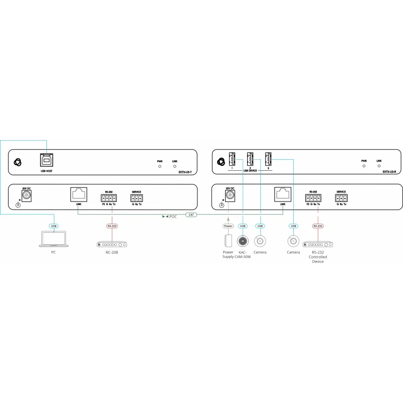 • Funciona junto al transmisor correspondiente del sistema Kramer EXT3-U3 en topología punto a punto.