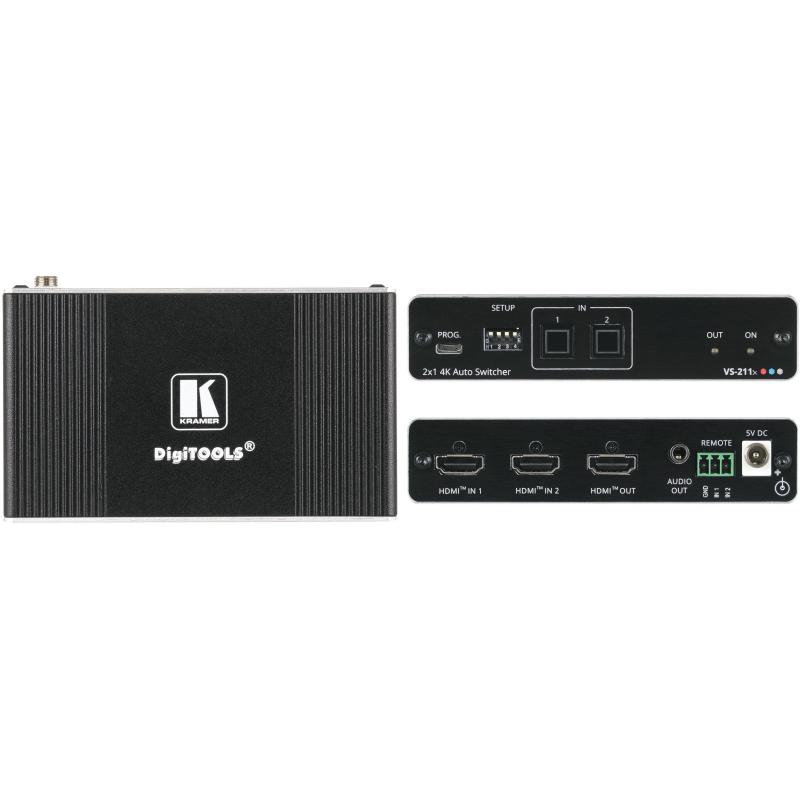Selector Automático Kramer VS-211X con versión HDMI 2.0, ancho de banda de 17,82 Gbit/s y soporte para vídeo 2160p, HDCP 2.2 y EDID