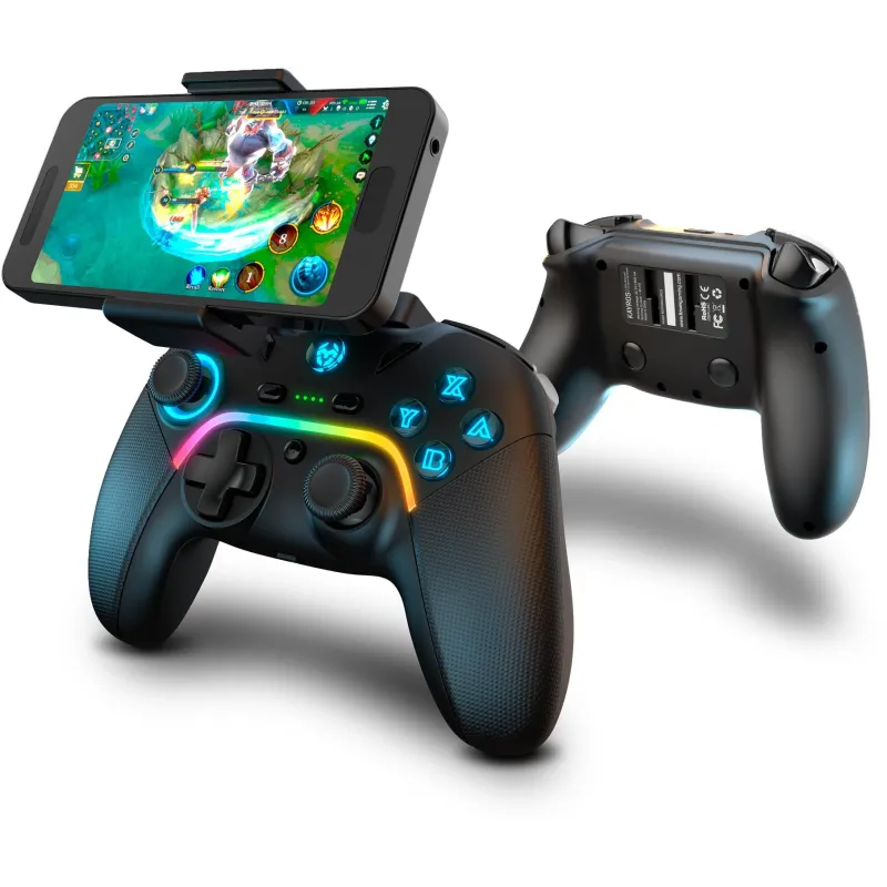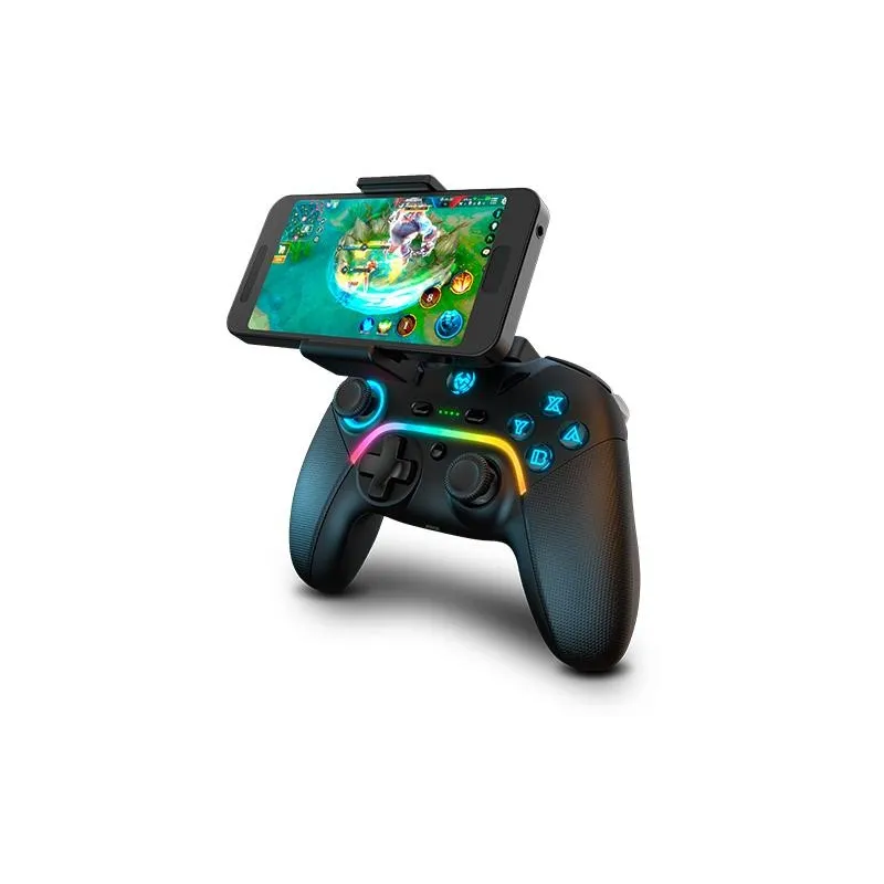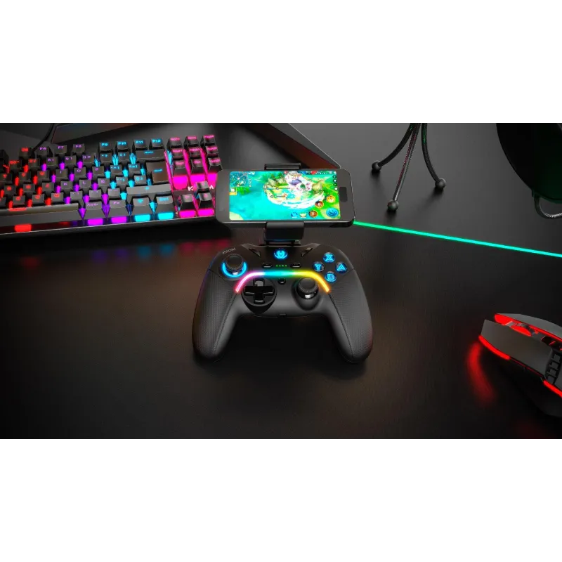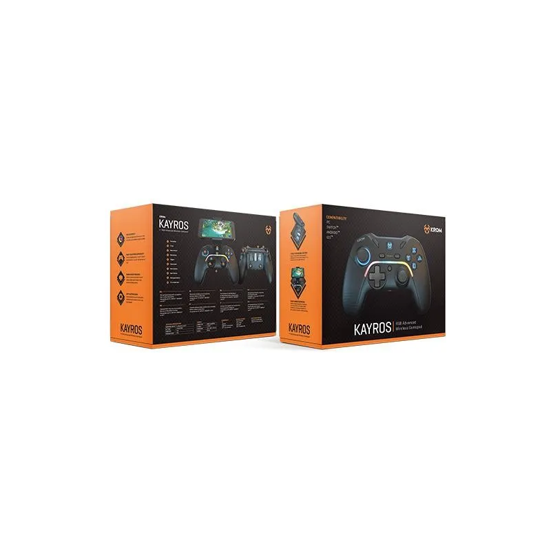 Kayros: Krom Kayros es un mando bluetooth ergonómico, pensado para la competición, que ofrece un excelente rendimiento. Compatible con varias plataformas, incluye receptor inalámbrico de 2.4 GHz. Se trata de un gamepad RGB con muy buena autonomía perfecto para disfrutar de juegos tipo shooter o arcade.