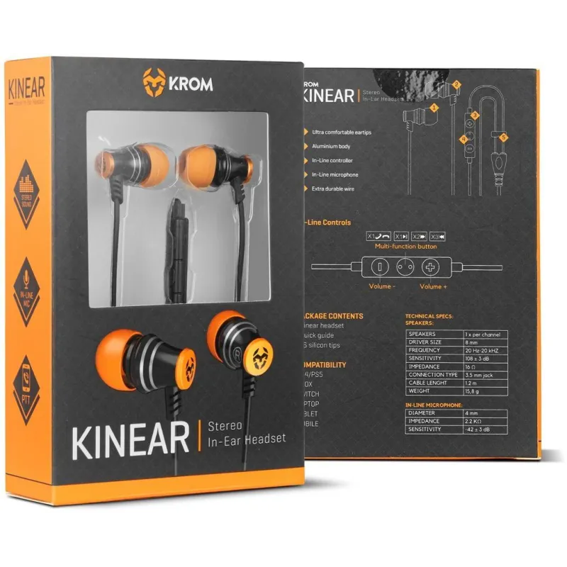 Krom Kinear Auriculares Gaming Intrauditivos Negro/Naranja