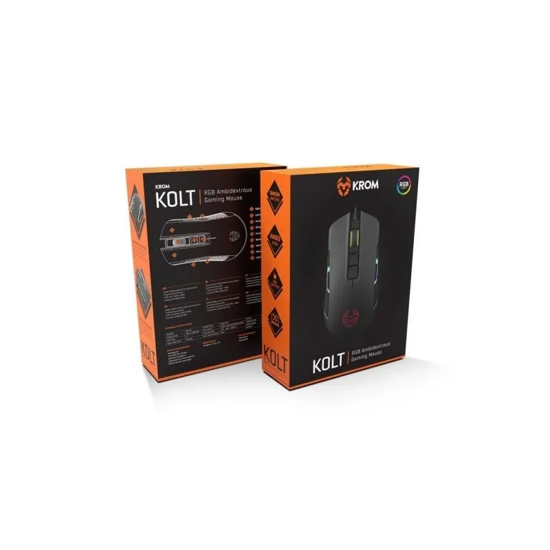 KOLT Fruto de la tecnología que te ofrece la mejor precisión y de un diseño versátil y ambidiestro llega el ratón Krom Kolt, el arma imprescindible para traducir toda tu estrategia y movimientos de manera inmediata a la pantalla. Kolt cuenta con un preciso sensor óptico (AVAGO A3050) y una sensibilidad de hasta 4000 DPI que podrás configurar desde su intuitivo software. Además, para una mayor inmersión en el juego, podrás crear diferentes ambientes gracias a su iluminación RGB super intensa.