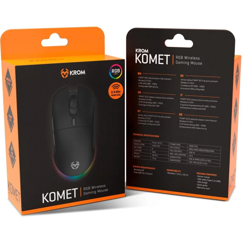 Krom NXKROMKOMET Komet Ratón Gaming Inalámbrico RGB Negro 2400 DPI