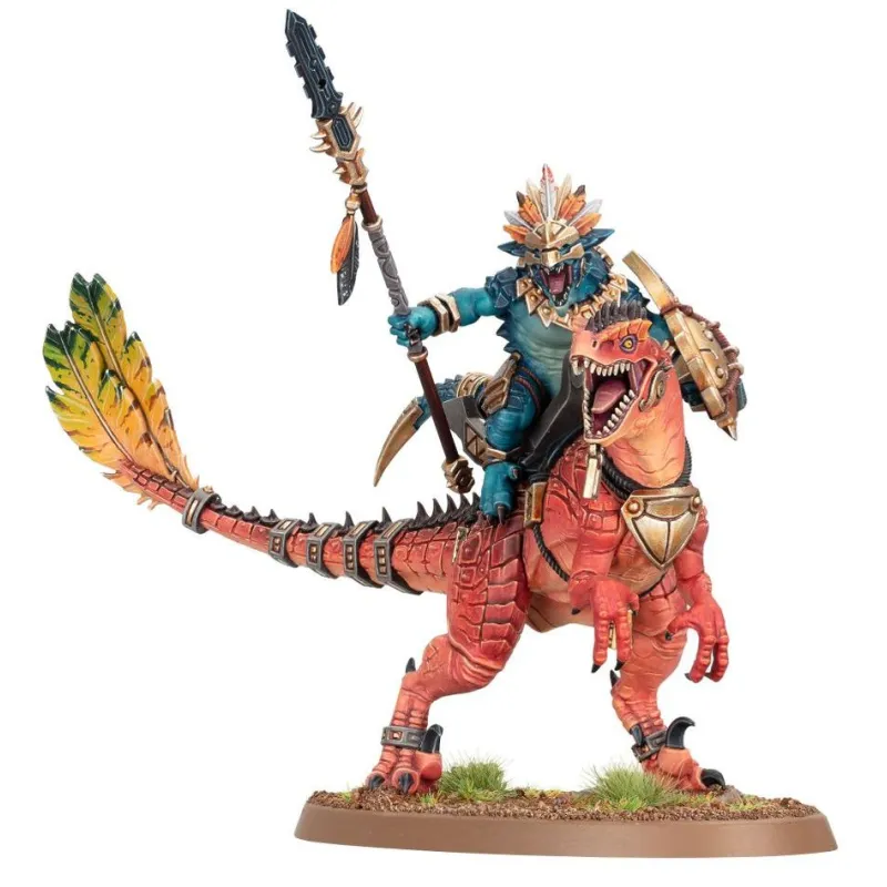 La presencia de esta caballería en la mesa crea un punto focal que destaca tanto en partidas casuales como en vitrinas, dando personalidad a tu fuerza de Hombres Lagarto.