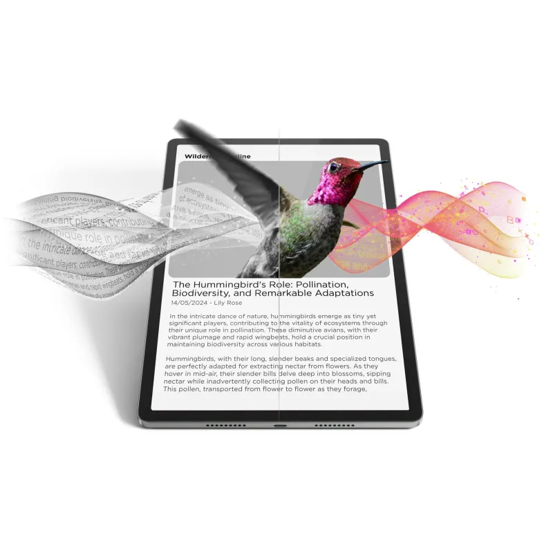 Disfruta de una calidad de imagen impresionante con la pantalla 3K 144 Hz de la Lenovo Idea Tab Pro ZAE40074ES . Su resolución de 2944 x 1840 píxeles y tecnología LTPS LCD ofrecen colores vivos, gran nitidez y una fluidez visual perfecta para vídeos, juegos o lectura. La tasa de refresco de 144 Hz proporciona una experiencia suave, ideal para contenidos en movimiento. Con un brillo de 400 nits y una densidad de 273 ppp, cada detalle se muestra con claridad. La pantalla 3K 144 Hz convierte a esta tableta en una herramienta multimedia de alto nivel, perfecta para quienes buscan calidad visual sin compromisos.