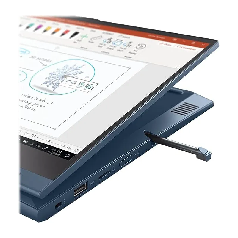 DISEÑO ELEGANTE: El exterior completamente metálico del Yoga 14s ofrece una estructura robusta y un tacto extraordinario, y su color gris mineral le da un aspecto profesional. Su pantalla FHD cuenta con Dolby Vision™ y una pantalla táctil Corning® robusta, con biseles delgados en los cuatro lados y una relación pantalla-cuerpo del 86 %. Además, los altavoces Harman y los micrófonos de matriz dual permiten realizar videoconferencias de alta calidad.