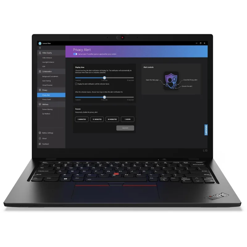 IMPACTA EN LAS LLAMADAS DE VIDEO: Lenovo View, con mejoras ajustadas por IA, hace que tus videollamadas sean profesionales y geniales. Utiliza el encuadre automático para mantenerte enfocado y el ajuste automático para proyectarte en la mejor luz. Junto con Dolby Voice®, el portátil L13 Gen 5 suprime ruidos no deseados y distracciones, para que tus llamadas suenen claras, no solo cristalinas, sino como en una sala de conciertos.