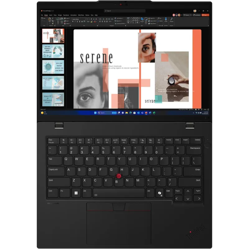 DISEÑO ACCESIBLE: Nuestro teclado ThinkPad rediseñado, que marca el estándar en términos de accesibilidad, incluye ahora marcadores táctiles en las teclas más comunes para mejorar la capacidad de detección, así como una protuberancia LED en braille para indicar fácilmente la ubicación del puerto de carga. El lector de huellas dactilares se combina con el botón de encendido para lograr una experiencia más sencilla. Incluso hemos aumentado el tamaño de nuestro TrackPad a 120 mm (4,72?). Nuestro emblemático TrackPoint rojo sigue permitiéndote navegar, pero con un doble toque se abre un menú TrackPoint rápido personalizable, para optimizar los valores de audio y vídeo.